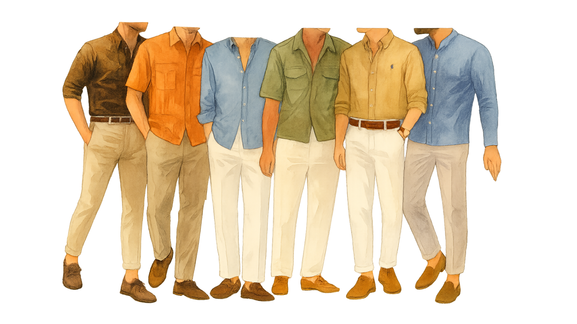 Island-Polished, Lightweight tailoring, relaxed shirts, and sun-washed tone pants.
